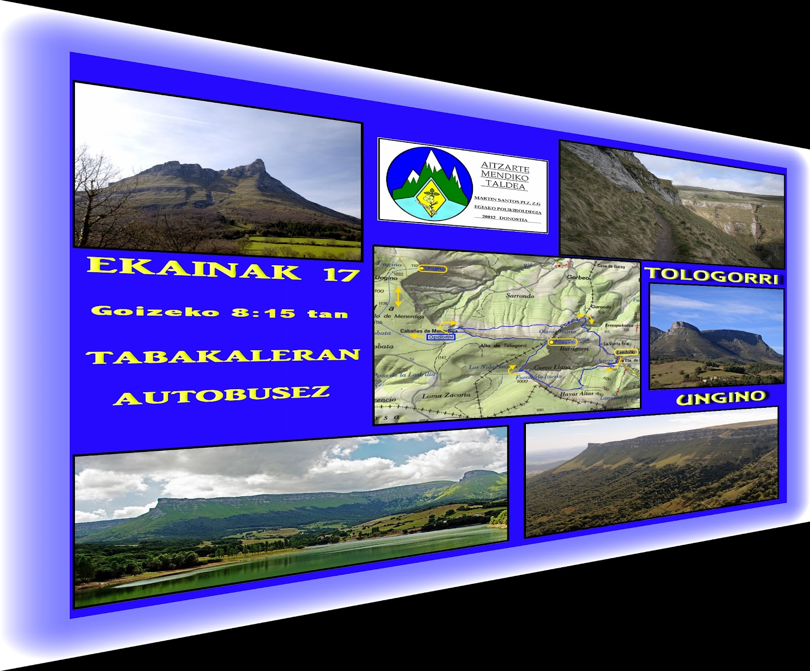Gogoratu irteera autobusez izango dela, pertsona heldu bakoitzeko 10 € ordaindu behar direla eta Tabakaleratik goizeko 08:15tan aterako garela. Izena emateko, ohikoa den bezala, Latxagarekin edo Mª Reina Eskolako kirol koordinatzailearekin kontaktuan jarri beharko duzue. Edozein zalantza argitzeko lasai deitu Aitzarteko telefonora (Tfno. 659/54.35.86), edo gure emailaren bidez: aitzartemt@euskaltel.net.